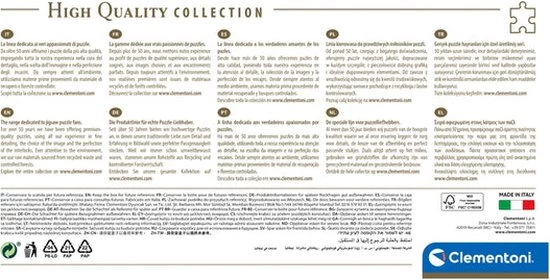 Clementoni High Quality Collection 39659. Aantal puzzles: 1000 stuk(s). Genre: Stripfiguren, Aanbevolen leeftijd (min): 14 jaar, Aanbevolen leeftijd (max): 99 jaar. Breedte: 980 mm