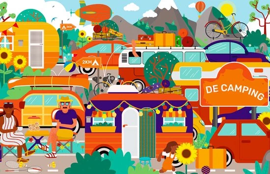 Het is weer vakantietijd! Een heerlijke periode vol lekker weer en gezelligheid. Lekker naar het strand, genieten van de zon, fietsen en een hapje eten met vrienden en familie. De puzzel is gebaseerd op een heerlijke tijd op de camping in Nederland of in andere delen van Europa. Welke onderdelen komen jou het meest bekend voor? Heerlijk fietsen door Frankrijk, naar het zwembad in Nederland of badmintonnen op de camping? Geniet van de heerlijke zomer en wij wensen je heel veel puzzelplezier met het puzzelen van “De Camping”.