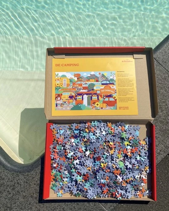 De Puzzelbox ‘De Camping’ bevat een unieke 1000-stukjes legpuzzel van maar liefst 68 x 44 cm.