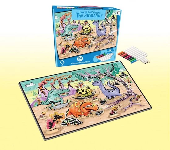 De Dinosaurus puzzel van PuzzelPresident is ideaal om van tijd tot tijd op terug te komen. Met 24 stukjes en vrolijke kleurstiften staat deze puzzel garant voor uren plezier. De puzzel komt met pennen dus je kan direct beginnen met genieten.
