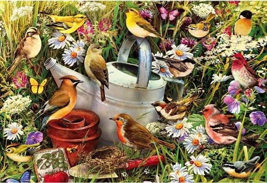 Er is altijd een hoekje in de tuin waar afgedankte tuinspullen te vinden zijn. Een groepje gevederde vrienden hebben het ideale plekje gevonden tussen het lange gras en wilde bloemen.