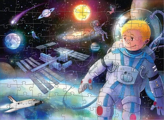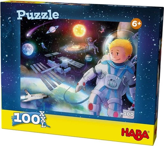 Op deze Haba puzzel in XXL-formaat staat een gedetailleerde afbeelding die je een deel van het heelal laat ontdekken. De puzzel bestaat uit 100 stukjes.