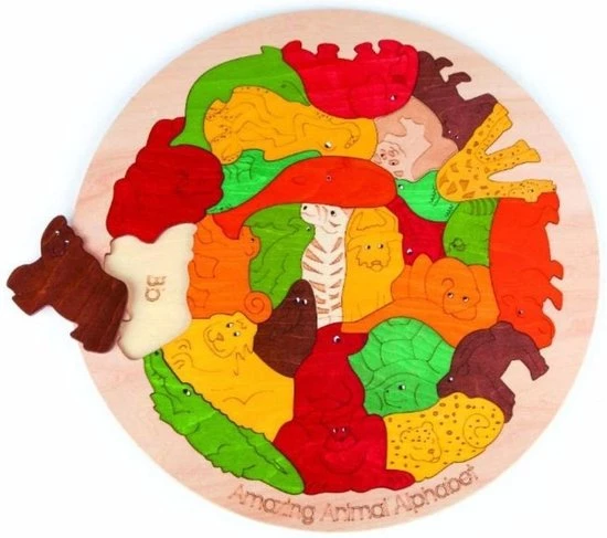 Deze kleurrijke houten puzzel heeft unieke en prachtige illustraties met verschillende dieren die elk een letter van het onderliggend gedrukte alfabet voorstellen. Ontdek waar elk stuk precies past.