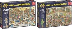 Jan van Haasteren tekent al decennia lang humoristische, kleurrijke platen met veel detail. De doorgewinterde fan zoekt in elke puzzel direct naar de haaienvin, hét handelsmerk van Jan. Om aan de grote vraag naar Jan van Haasteren puzzels te voldoen, wordt er ook getekend door ‘Jan van Haateren studio’ tekenaars. Samen met Jan werken deze tekenaars aan nieuwe dolkomische platen. In de Jumbo collectie vind je tientallen Jan van Haasteren puzzels van 150 tot 3000 stukjes. Heel veel puzzelplezier!