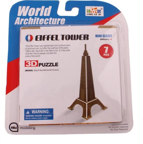 Voor deze leuke bronskleurige 3D-Puzzel van de Eiffeltoren heb je geen schaar of lijm nodig om hem in elkaar te zetten, omdat je de delen simpelweg bij elkaar kunt steken. Dit traint de oog-handcoƶrdinatie en onderwijst tegelijkertijd een beetje de wereldgeschiedenis.