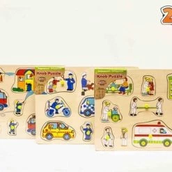 Merkloos Knoppuzzel Hout Politie, Brandweer Of Ambulance 10pc
