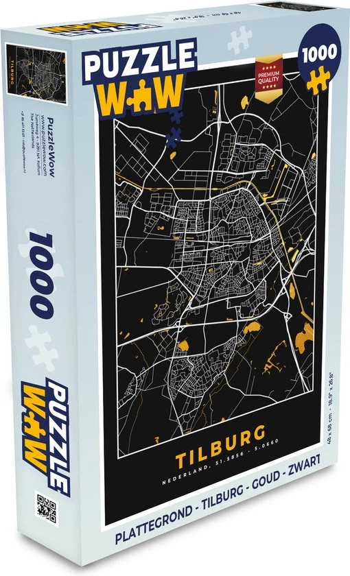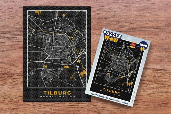 Puzzel 1000 stukjes – Plattegrond – Tilburg – Goud – Zwart – Puzzels