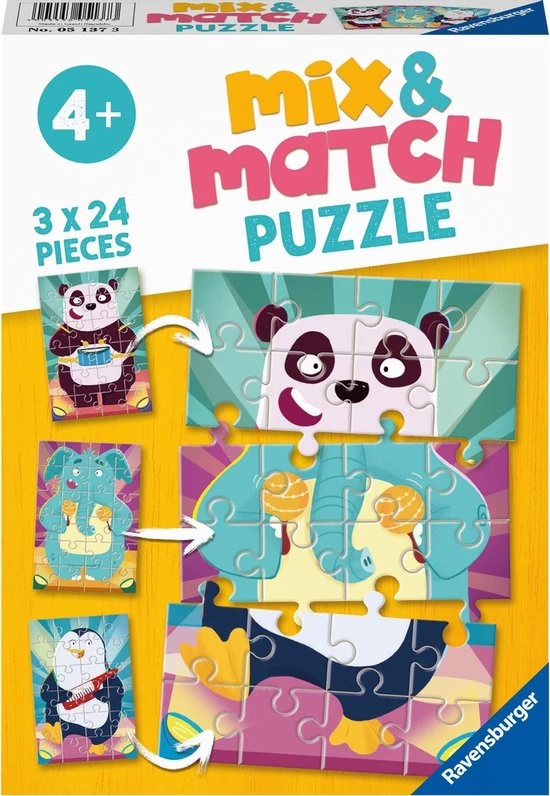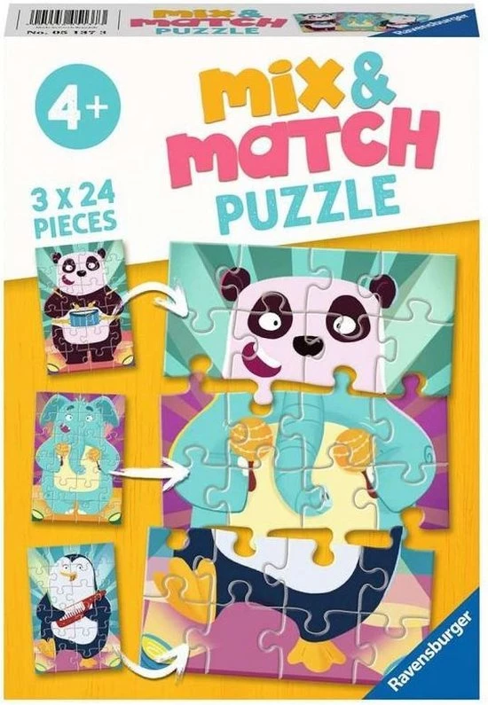Ravensburger Mix & Match Puzzel Rockende Dieren – 3 X 24 Stukjes – Kinderpuzzel