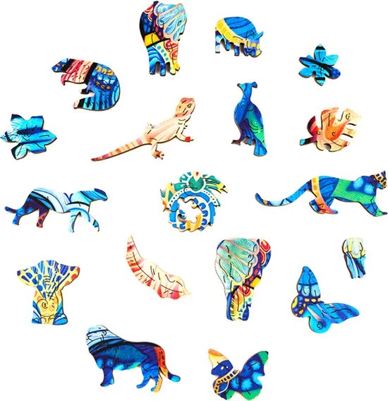 Maak kennis met de eeuwige olifant van UNIDRAGON. Deze houten puzzel heeft een kleurrijk artwork-ontwerp en unieke stukjes. Je vindt er stukjes in de vorm van bloemen, vlinders, vogels, olifanten en ook andere angstaanjagende roofdieren. Maak deze puzzel compleet en ontdek de boeiende wereld van olifanten.