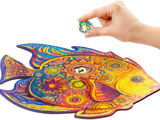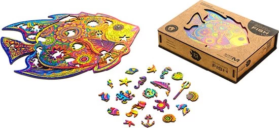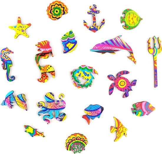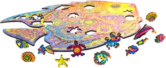 De rijke kleuren en ongebruikelijke patronen op de visschubben zijn speciaal ontworpen door onze illustrator. Het in elkaar zetten van deze puzzel wordt een opwindend spel waarbij je de onderwaterwereld steeds beter leert kennen. Elk puzzelstukje is uniek. Je zult een octopus, dolfijn, schildpad, en andere onderwaterwezens in je handen krijgen. Je wordt de eigenaar van een echte drietand en je zult de kleine zeemeermin ontmoeten. Om dit nautische verhaal compleet te maken, zul je golven, koraal en nog veel meer zien. De traditie is dat de vorm van de complete puzzel ervoor zorgt dat het in elkaar zetten een ingewikkelde taak is.