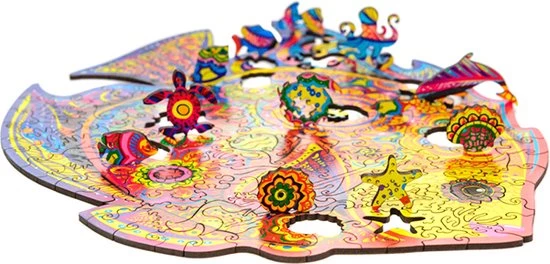 De puzzels zijn gemaakt van 3 mm dik, geperst HDF. Dit materiaal is milieuvriendelijk, van hoge kwaliteit en duurzaam. Als je klaar bent met het in elkaar zetten, leg de puzzel dan niet terug in de kast. Gebruik hem als interieurdecoratie! Wij hebben hiervoor een speciaal lijmsysteem ontwikkeld dat de puzzel in elkaar zet en aan de muur plakt.