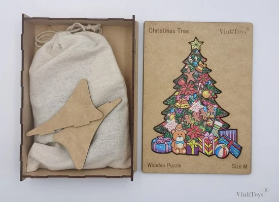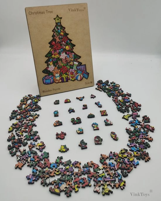 Zoek alle puzzelstukjes bij elkaar en vorm samen deze goed versierde kerstboom met cadeautjes! Vind de puzzelstukjes zoals een rendier, kerstsok, muts, handschoen en nog veel meer!